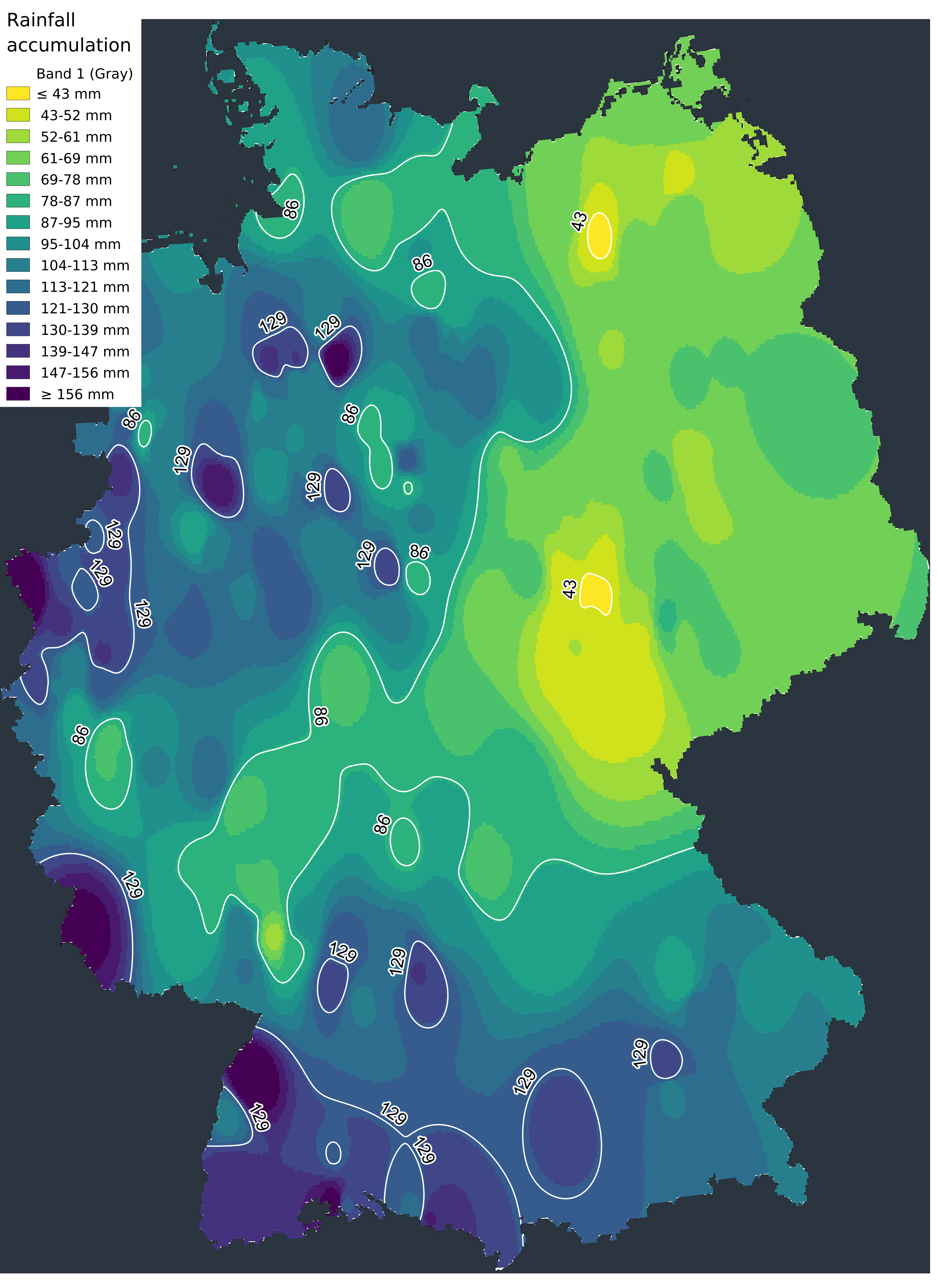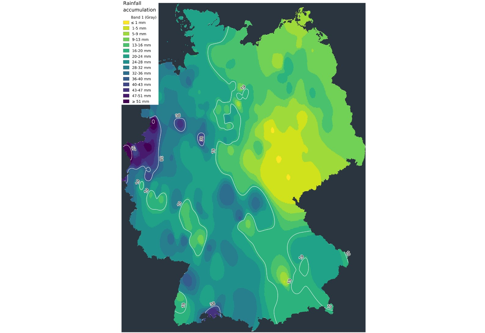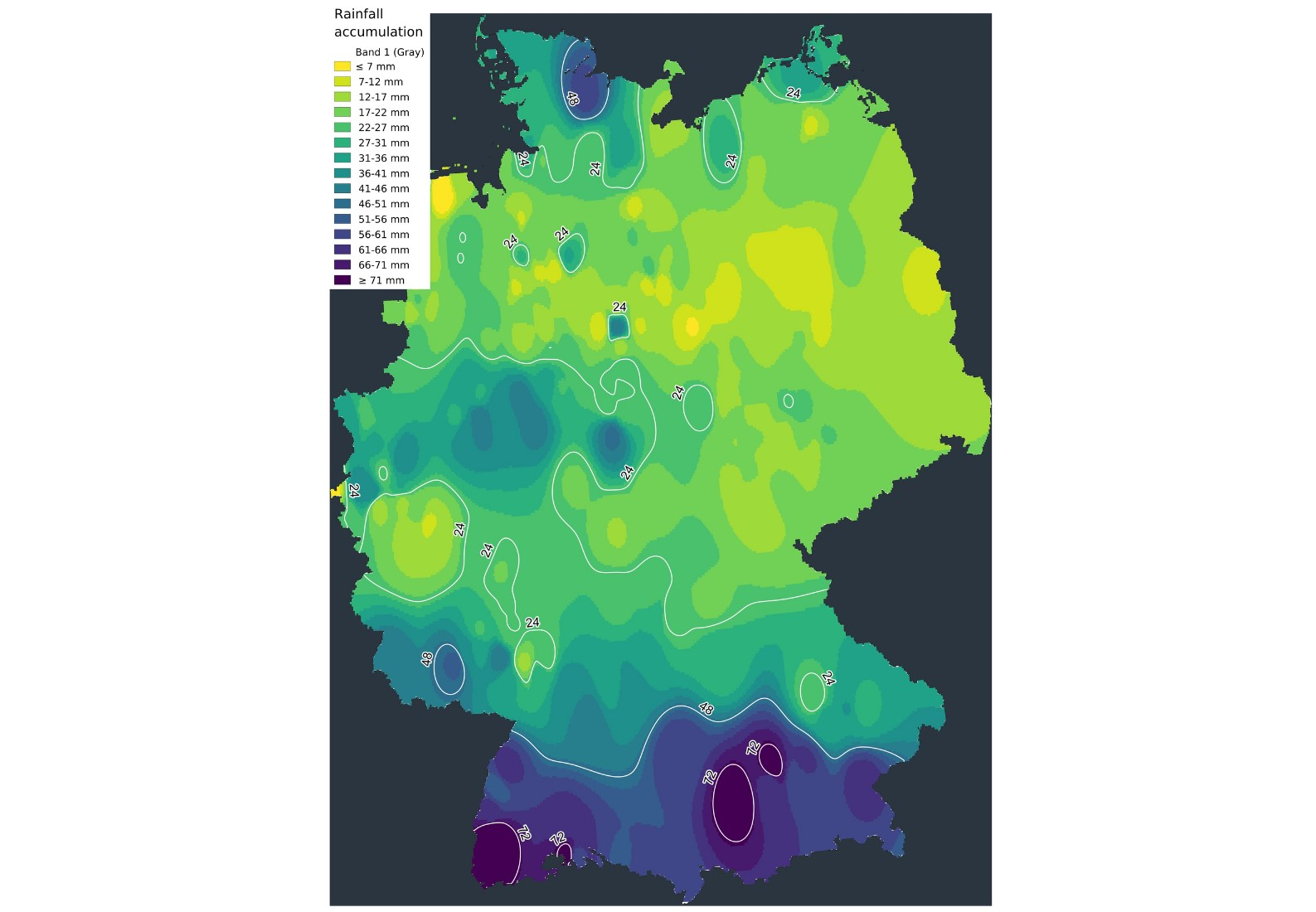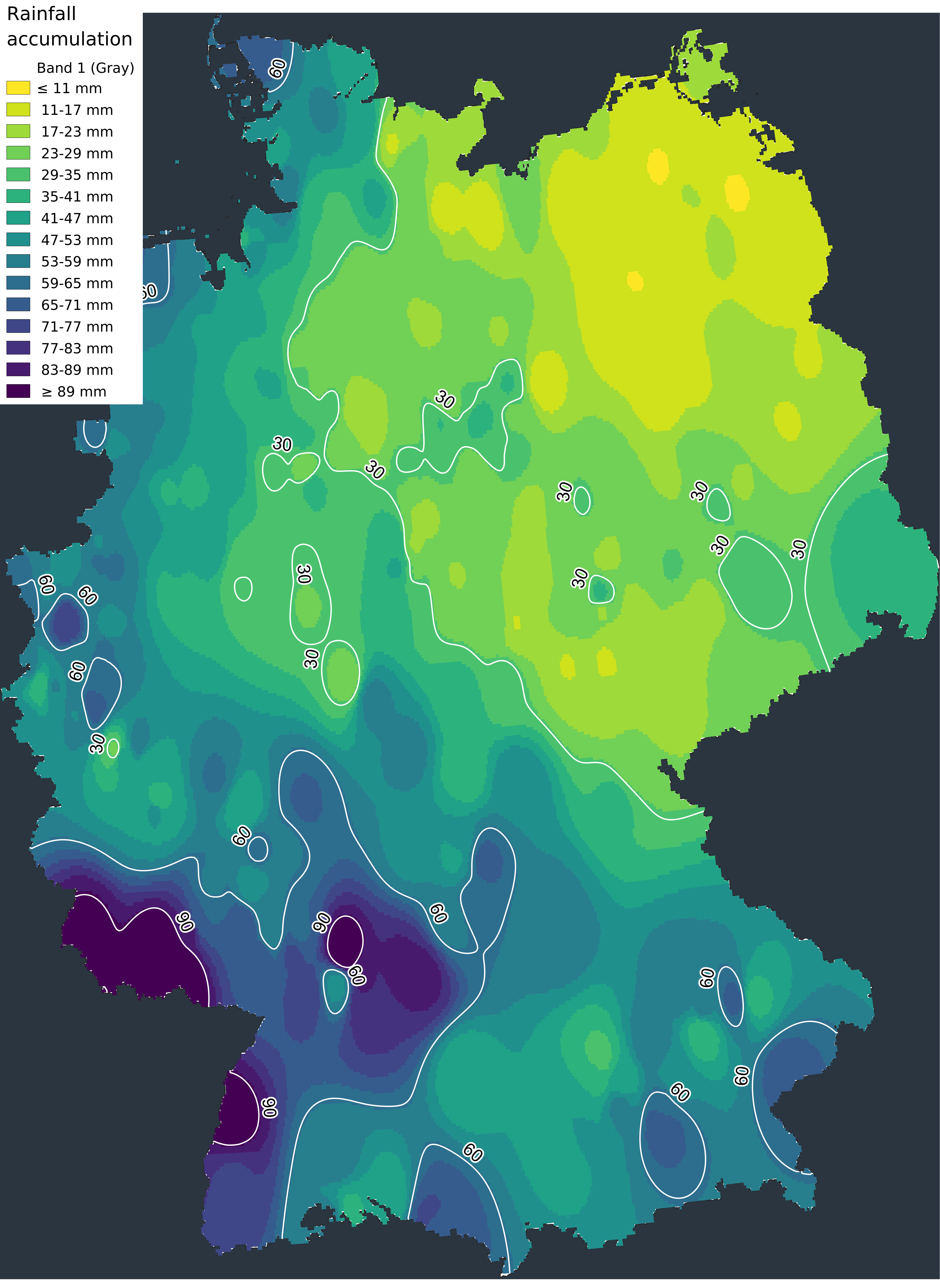 Die Westströmung war in den letzten Wochen sehr aktiv und ermöglichte es den Niederschlägen zu uns zu gelangen. Die Tiefdruckgebiete, die im Atlantik Gestalt und Kraft annahmen, fegten anschließend über große Teile West- und Mitteleuropas hinweg und brachten Regen und starke Windböen mit sich. Manchmal fielen in weniger als 24 Stunden zwischen 25 und 50 mm Niederschlag. Das Tief JASPER brachte in einigen Gebieten bis zu 80 mm Niederschlag in 3 Tagen, wobei Süddeutschland wieder einmal am stärksten betroffen war.