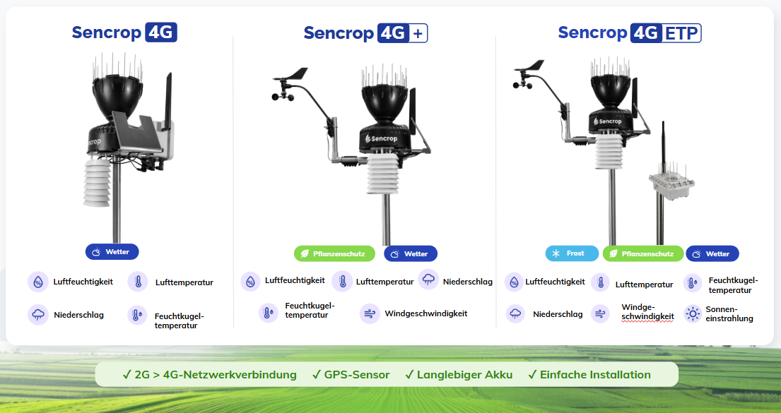 Entdecken Sie die Produktreihe der Sencrop 4G-Wetterstationen