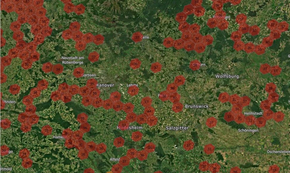Extreme Dürre herrscht in vielen Teilen Deutschlands und wird zum neuen Normal. Mit unserem bereits ausgebauten Netz an lokalen Wetterstationen können wir zeigen, warum. Hier: Maximaltemperaturen an verschiedenen Orten unserer Stationen in Niedersachsen, im August 2022.